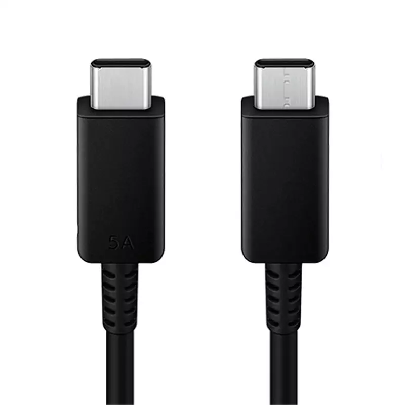 • کیفیت اورجینال سامسونگ: این کابل با پک اصلی سامسونگ عرضه می‌شود که نشان‌دهنده کیفیت ساخت بالا، دوام و سازگاری کامل با دستگاه‌های شماست. روی بسته‌بندی عبارت "USB-C to USB-C (5A, 1m)" به وضوح نشان‌دهنده توانایی انتقال جریان بالا (تا 5 آمپر) و طول 1 متر کابل است.