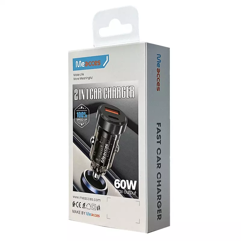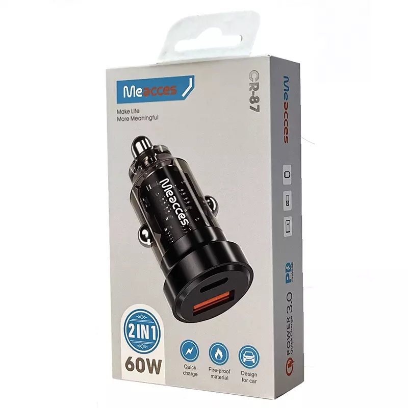 دیگر نگران تمام شدن شارژ دستگاه‌های خود در طول سفر نباشید. با شارژر فندکی meacces CR-87، می‌توانید تجربه‌ای متفاوت از شارژ سریع و ایمن را در داخل خودرو تجربه کنید. این محصول دوکاره با توان خروجی فوق‌العاده ۶۰ واتی و طراحی هوشمندانه، راهکاری ایده‌آل برای شارژ تمامی گجت‌های شماست.